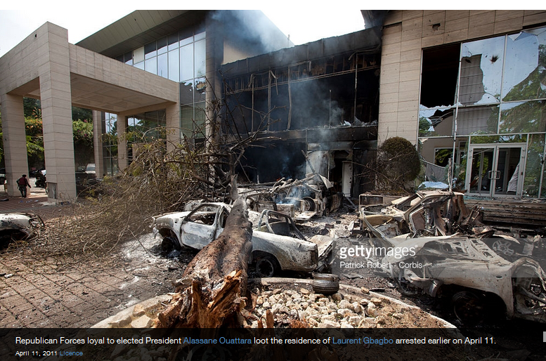 Mais WATTAO est en première ligne de ceux qui ont mis la Côte d’Ivoire à feu et à sang depuis 2002. Quand on pense que la CPI n’a aucune preuve contre Laurent GBAGBO, Charles Blé Goudé et toutes celles qui l’ont soutenu et qui le soutiennent encore au péril de leur vie –et pour cause puisqu’ils n’ont pas commis les crimes qu’on leur impute- tandis que les preuves des exactions de la francivoire par OUATTARA/COMPAORE/PING et consorts interposés existent bel et bien… Rien que pour la crise postélectorale de 2010/2011, il y a toutes les photos de la presse officielle qui démontrent la bestialité de la descente des mal nommées FRCI (Forces Républicaines de Côte d’Ivoire, ex-forces nouvelles, en plus clair mouvements rebelles ivoiriens qui sèment la mort et la désolation en Côte d’Ivoire depuis 1999 d’abord aux côtés de Robert GUEI puis alliés à OUATTARA jusqu’à aujourd’hui pour son arrivée et son maintien au pouvoir par la force). Nous en voulons pour preuve cette série de photos de Patrick ROBERT disponibles sur getty images[3] qui ont illustré les articles sur la crise ivoirienne des médiamenteurs officiels… Heureusement d’ailleurs que ce sont eux qui les publient, car si c’était nous autres pro-Gbagbo qui avions montré ces photos des crimes en direct des terroristes de OUATTARA abusivement présentés comme « les soldats loyaux du Président élu OUATTARA », on aurait crié au montage. Je suggère donc aux Juges de la CPI qui prétendent œuvrer pour la vérité et à Jean PING –grand ami de OUATTARA qui a légitimé les exactions commises contre le peuple ivoirien en 2010/2011 avant de saisir la CPI aujourd’hui pour dénoncer les crimes de BONGO- de bien vouloir auditionner tous les journalistes occidentaux qui ont couvert la crise ivoirienne et permis le maintien du système néocolonial qui les rémunère –je l’espère pour eux grassement- pour rétablir la réalité historique qu’on leur demande sans cesse de falsifier selon le storytelling intéressé des puissants qui nous gouvernent.